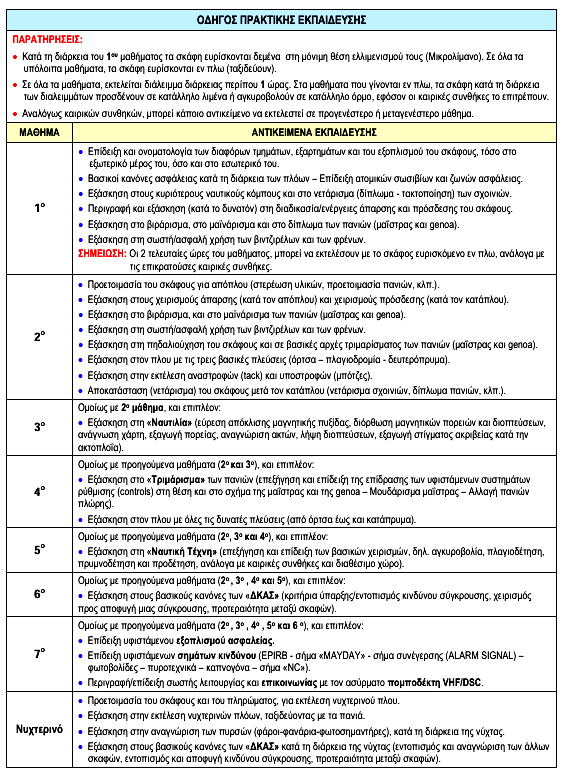 Στο τέλος της εκπαίδευσης, που διαρκεί περίπου 2 μήνες, η 1 μήνα το ταχύρυθμο, χορηγείται ύστερα από εξετάσεις πτυχίο, το οποίο σύμφωνα με την υφιστάμενη νομοθεσία, επιτρέπει τη διακυβέρνηση (skipper) η την ναύλωση ενός ιστιοφόρου σκάφους μέχρι 24μέτρα.